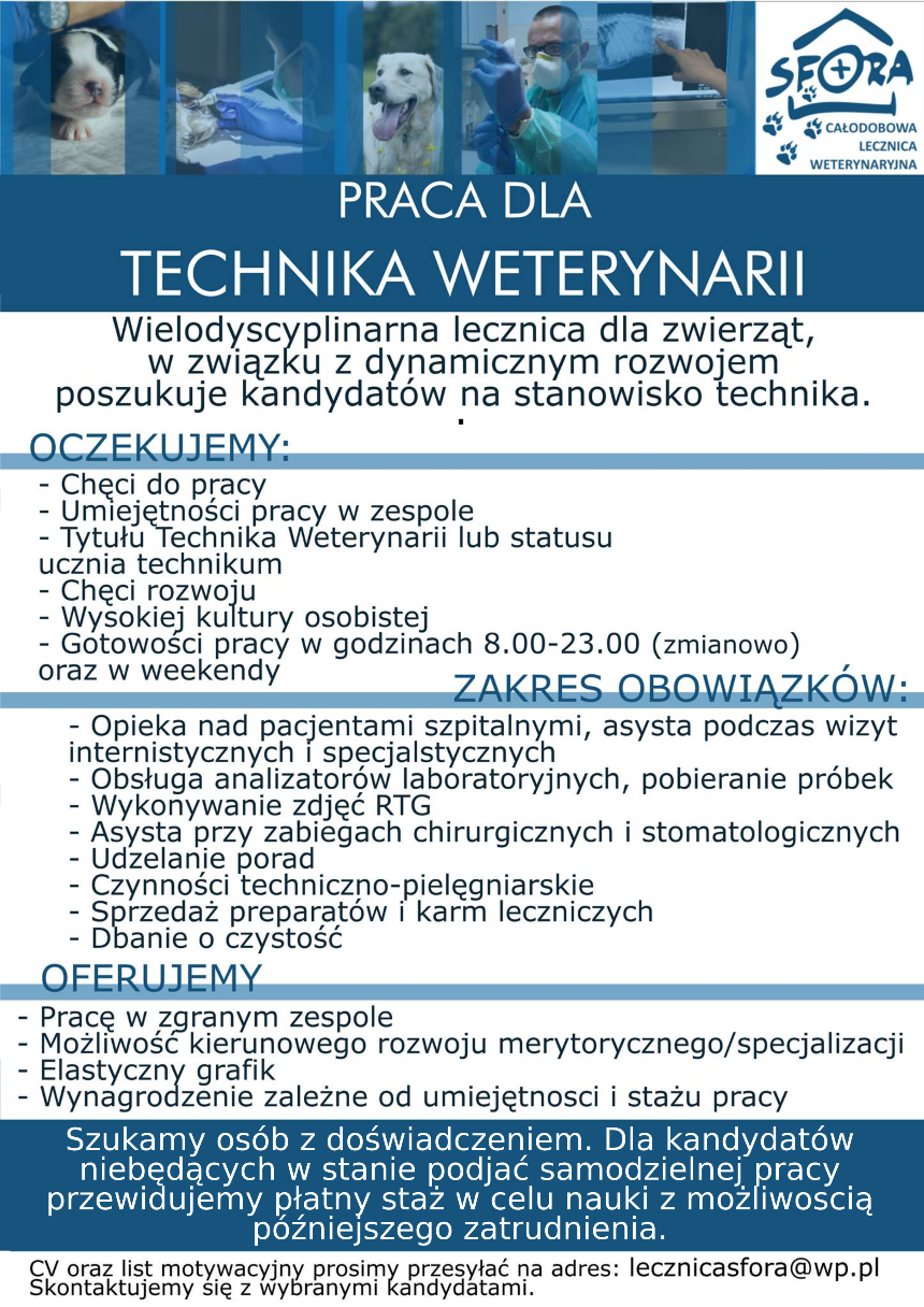 Poszukujemy Lekarza Weterynarii (pełen etat), na warszawskim Wawrze: