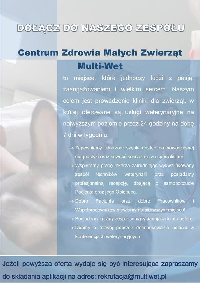 Centrum Zdrowia Małych Zwierząt Multi-Wet poszukuje do wspólpracy lekarza weterynarii