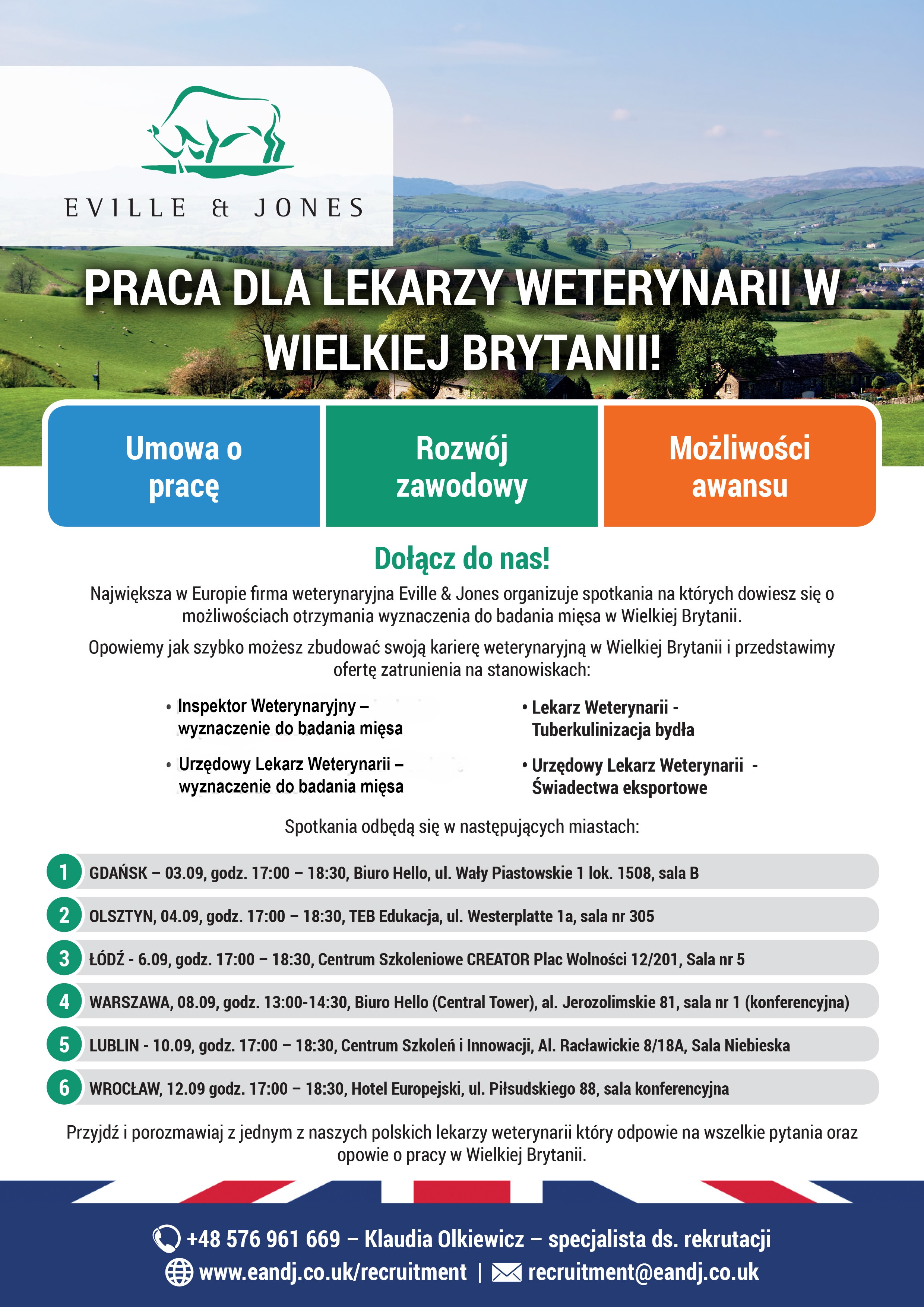 Największa w Europie firma weterynaryjna Eville & Jones organizuje spotkania na których dowiesz się o możliwościach otrzymania wyznaczenia do badania mięsa w Wielkiej Brytanii.