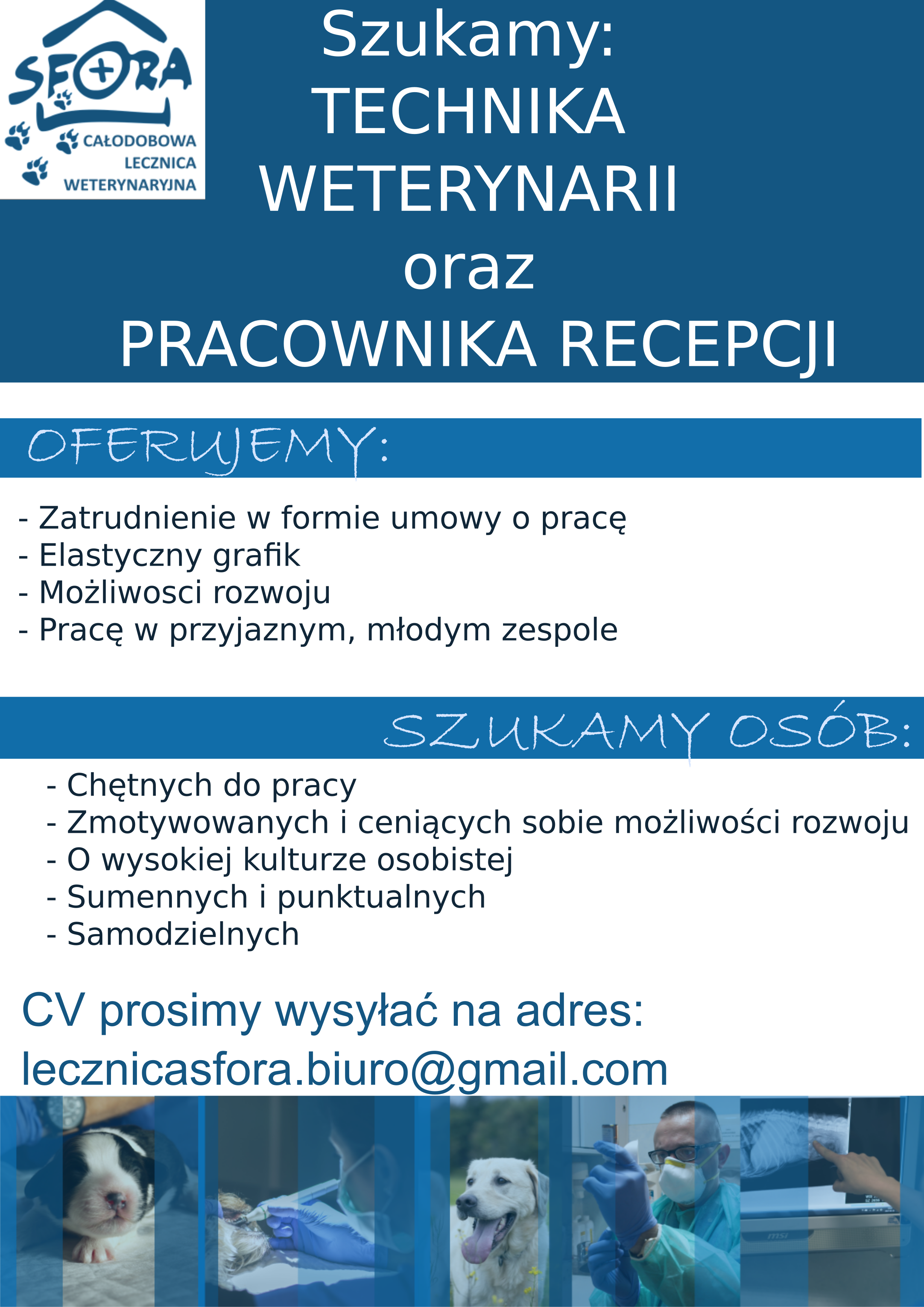 zatrudni Technika weterynarii (samodzielnego) oraz pracownika recepcji.